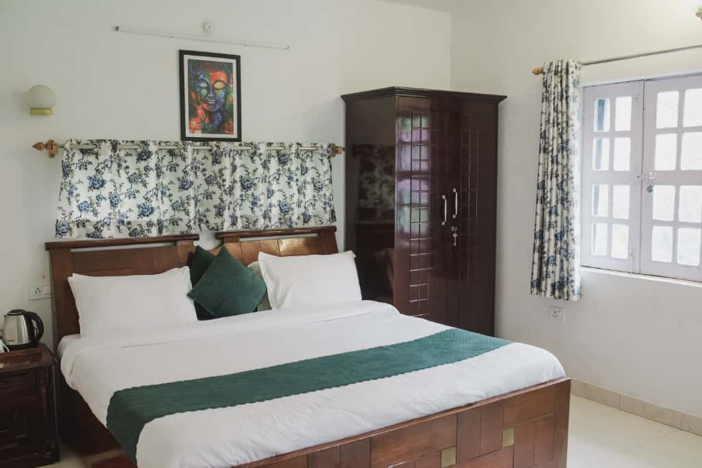 The Villa has three well furnished spacious rooms with three bathrooms and a lobby cum dining area with a well equipped kitchen. The rooms have huge windows with a garden view and get a lot of natural light.
