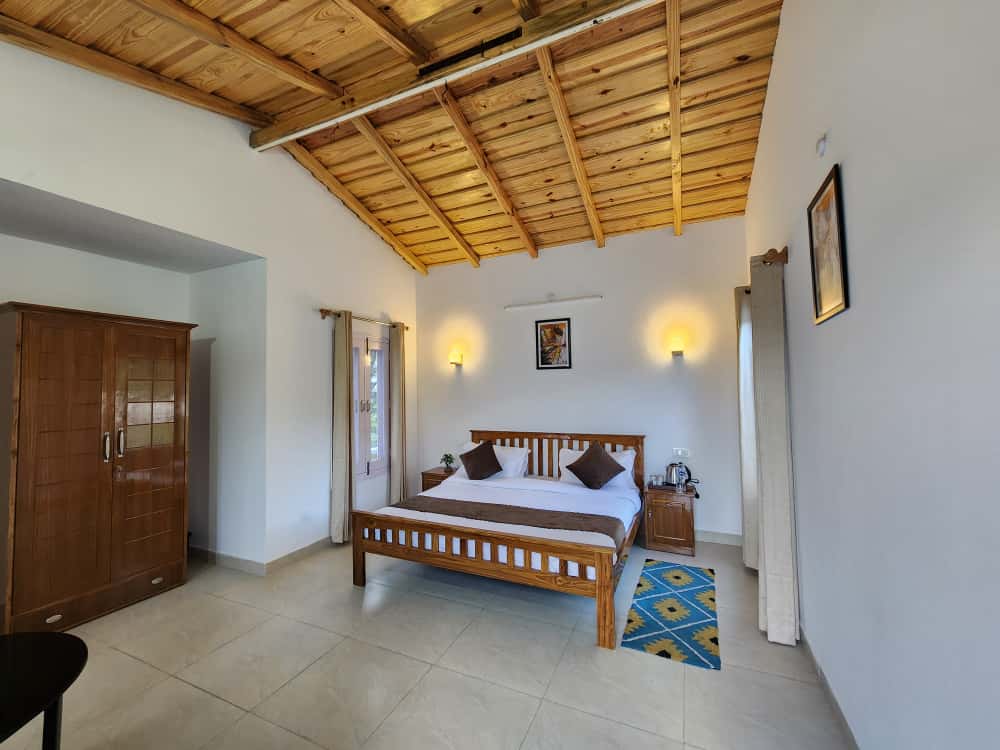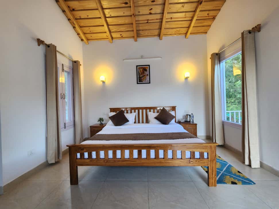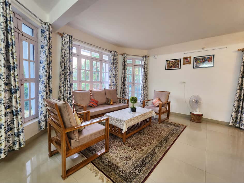 The Villa has three well furnished spacious rooms with three bathrooms and a lobby cum dining area with a well equipped kitchen. The rooms have huge windows with a garden view and get a lot of natural light.
